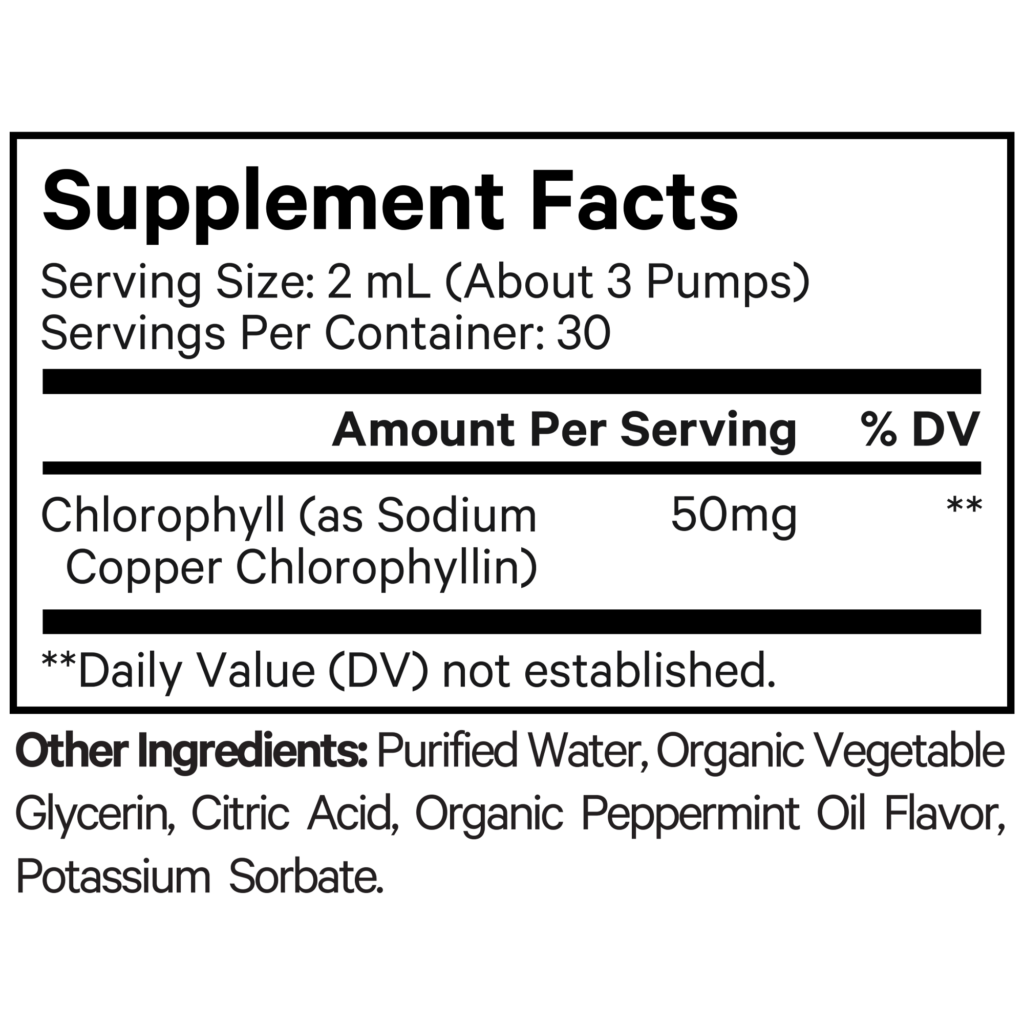 Codeage Chlorophyll Liquid Drops deliver 50mg of chlorophyll per serving, enhanced with organic peppermint oil for a refreshing flavor. This formula also includes vegetable glycerin and potassium to help preserve the quality of the chlorophyll.