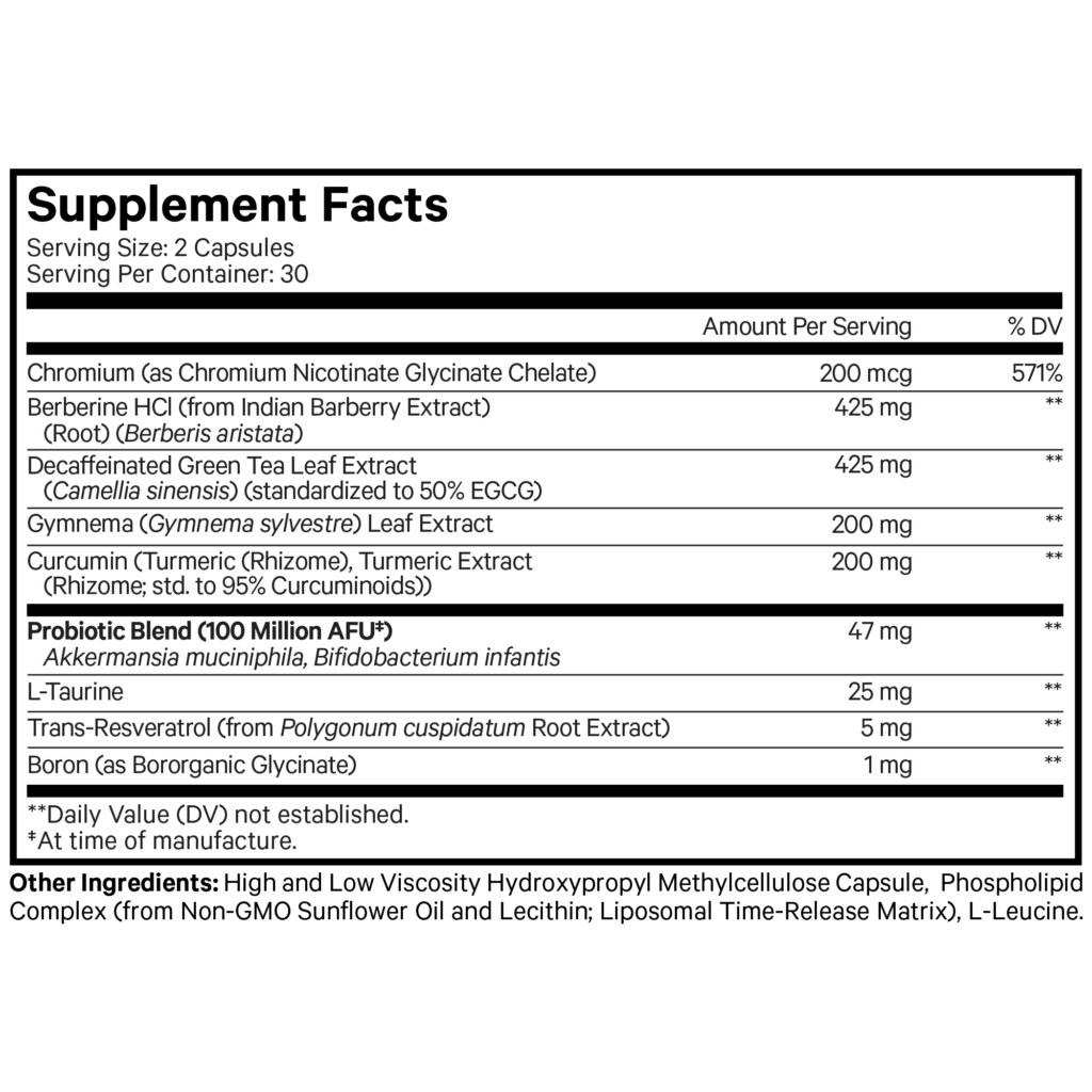 Codeage GLP-Advantage+ supplement is a comprehensive blend of chromium, berberine HCl, decaffeinated green tea, gymnema sylvestre, curcumin, L-taurine, resveratrol, boron, and a probiotic blend including akkermansia muciniphila. This GLP-1 advantage formula is crafted to help complement wellness routines.