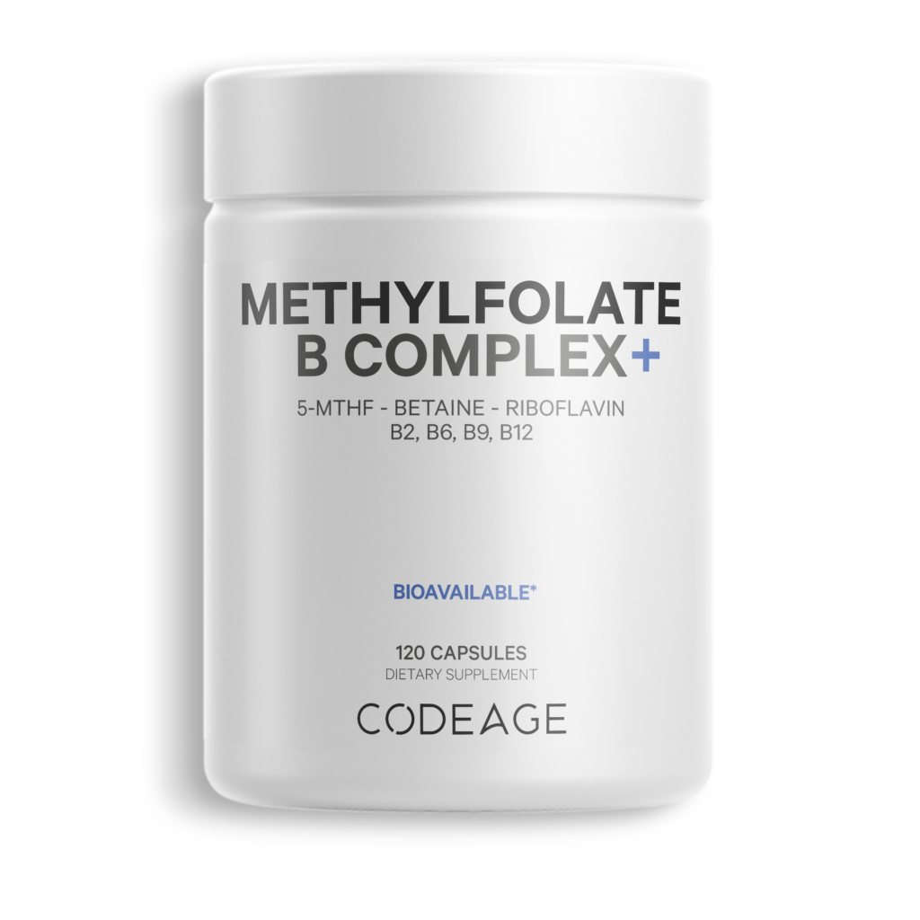 Codeage Methylfolate B Complex+ offers a blend of folate as 5-MTHF, riboflavin vitamin B2, vitamin B6, vitamin B12 in its methylated form, and betaine for a comprehensive vitamin B complex formula. 2-month supply.