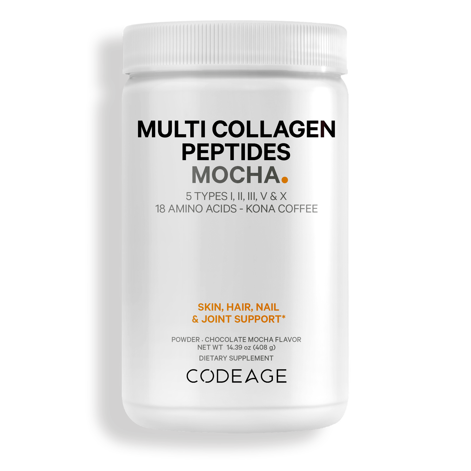 - Codeage Multi Collagen Peptides Mocha combines the richness of Kona coffee with a multi collagen formula featuring five types of collagen (I, II, III, V, and X). This instant coffee mix aims to elevate your morning routine and refresh your afternoons with a delightful mocha flavor.