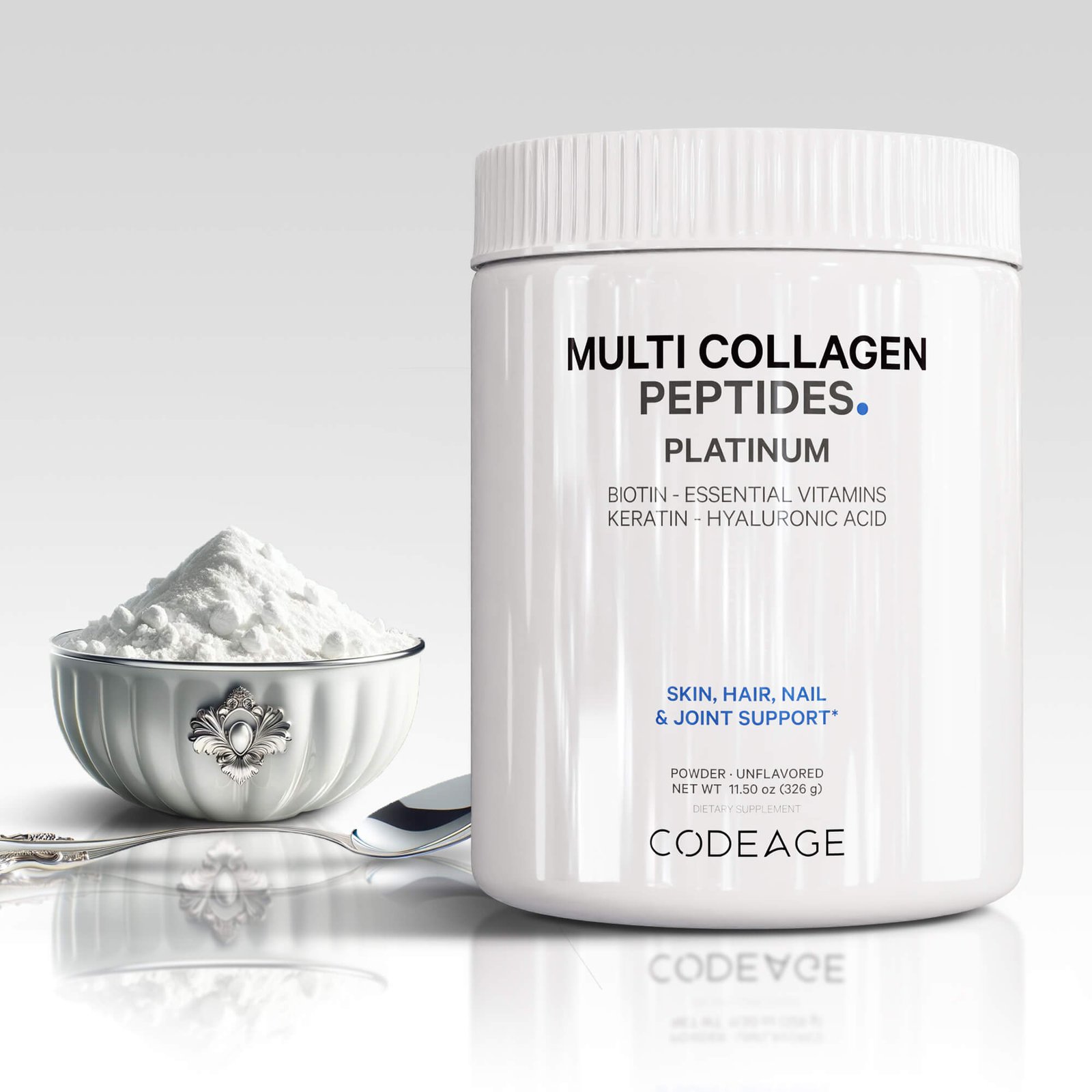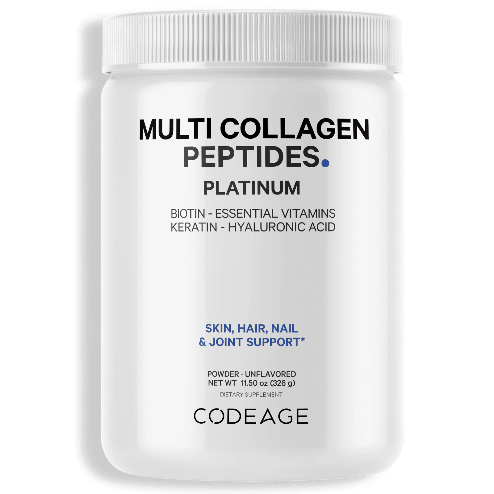 - Available in an unflavored powder format, Codeage Multi Collagen Platinum is designed for both women and men. It mixes easily into coffee, tea, smoothies, protein shakes, or any cold or hot drink and offers a 1-month supply per container.