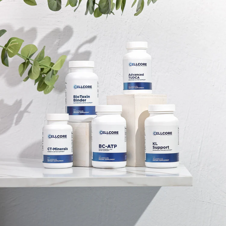 The MYC Support Kit includes Advanced TUDCA, BC-ATP, BioToxin Binder, CT-Minerals, and KL Support. Together, these supplements optimize drainage, mitochondrial health, and the body’s natural ability to detoxify.*
