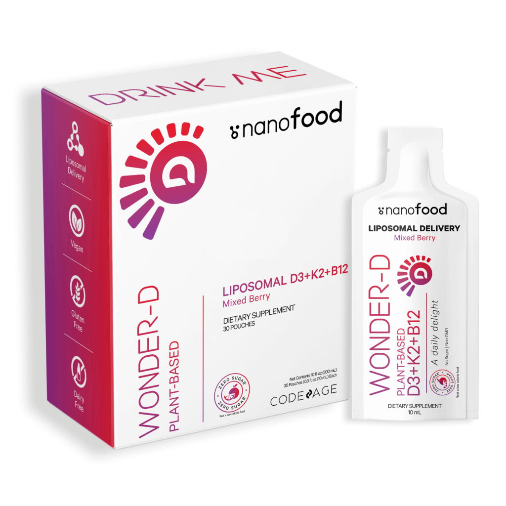 - Codeage Nanofood Liposomal Vitamin D3 + K2 + B12 Liquid Pouch supplement offers a convenient 3-in-1 plant-based multivitamin in liquid form.