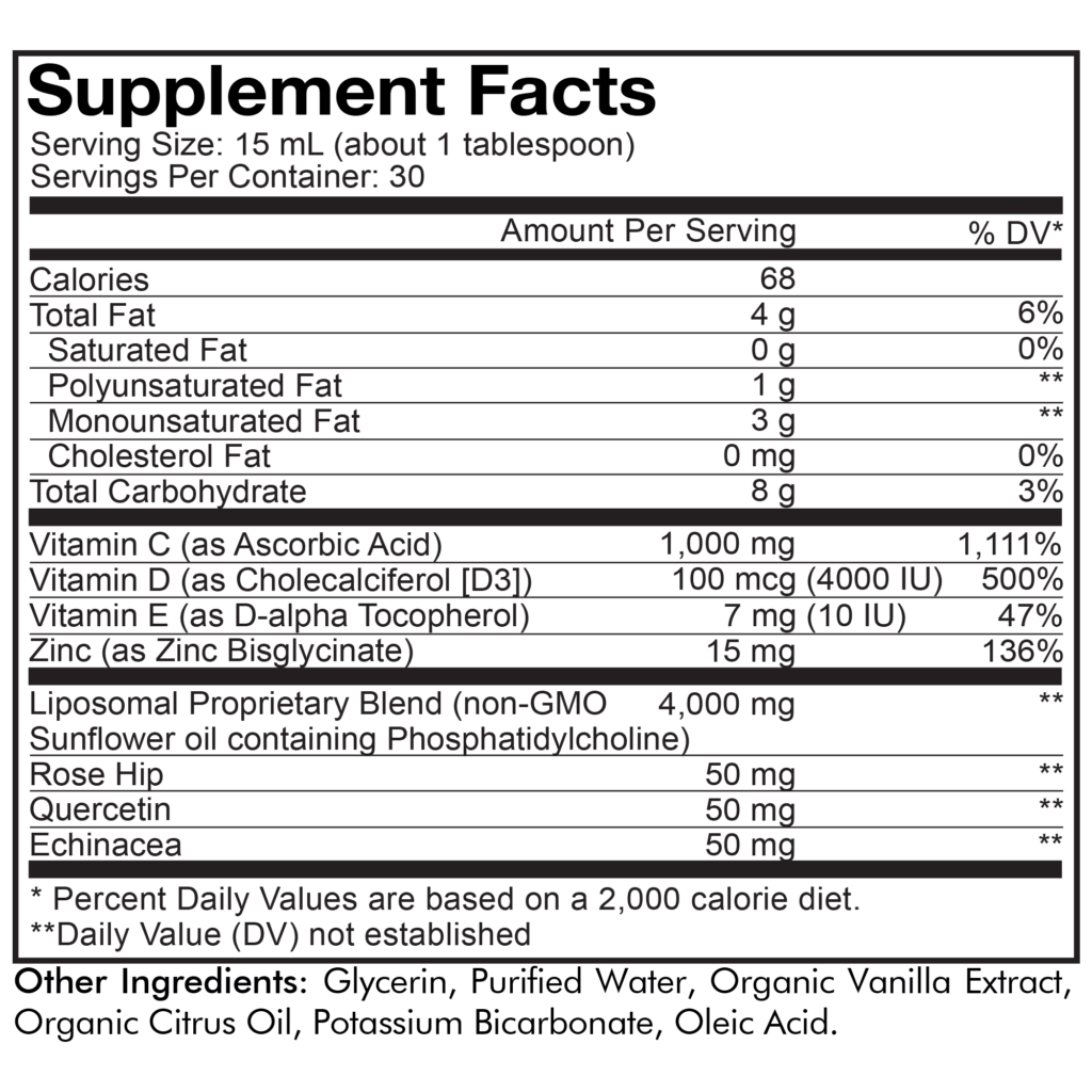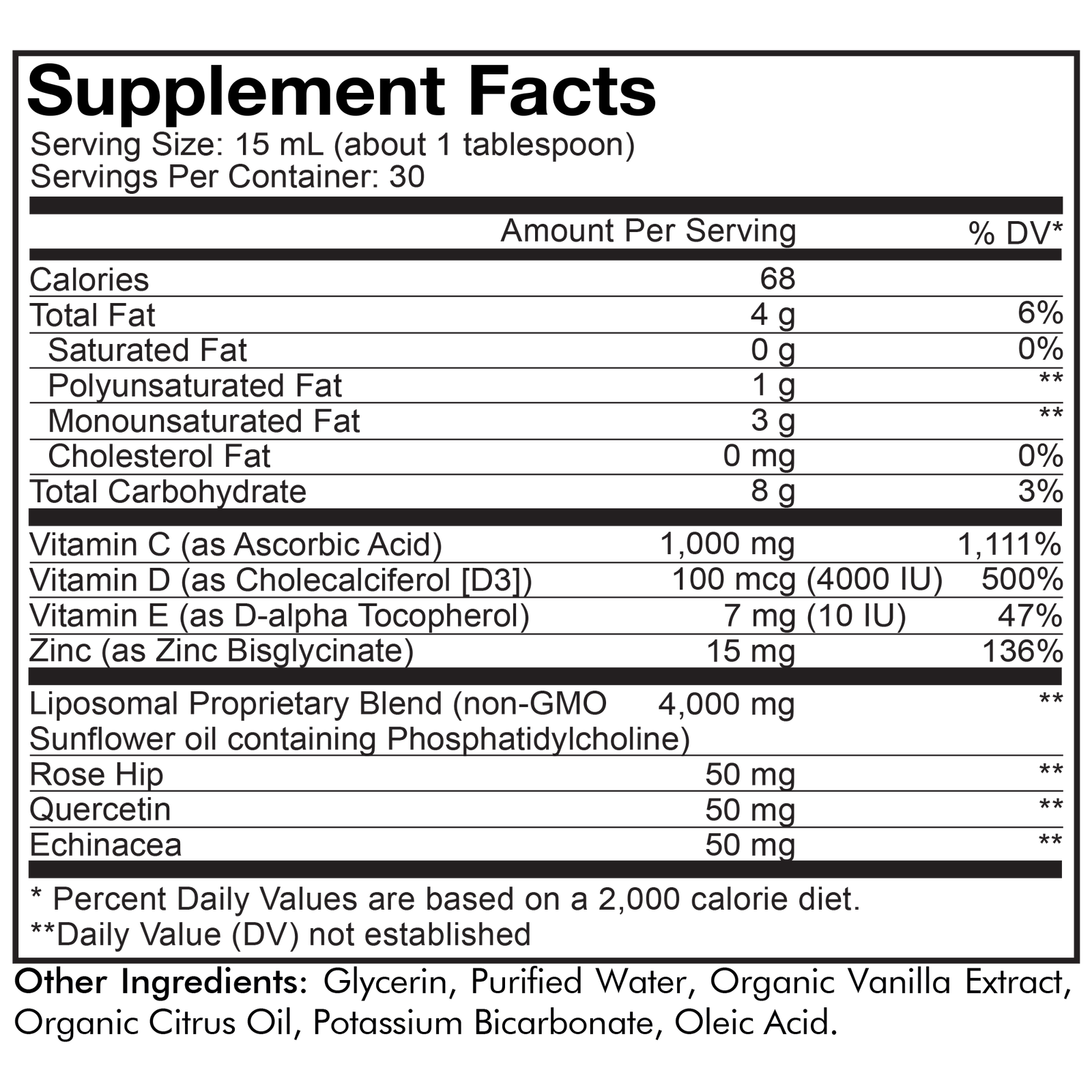 - This liposomal vitamin C liquid supplement is enriched with beneficial additions like rose hips, quercetin, and echinacea to elevate its formula further. This Wonder-C formula also offers a 4,000mg liposomal blend of non-GMO sunflower oil containing phosphatidylcholine.