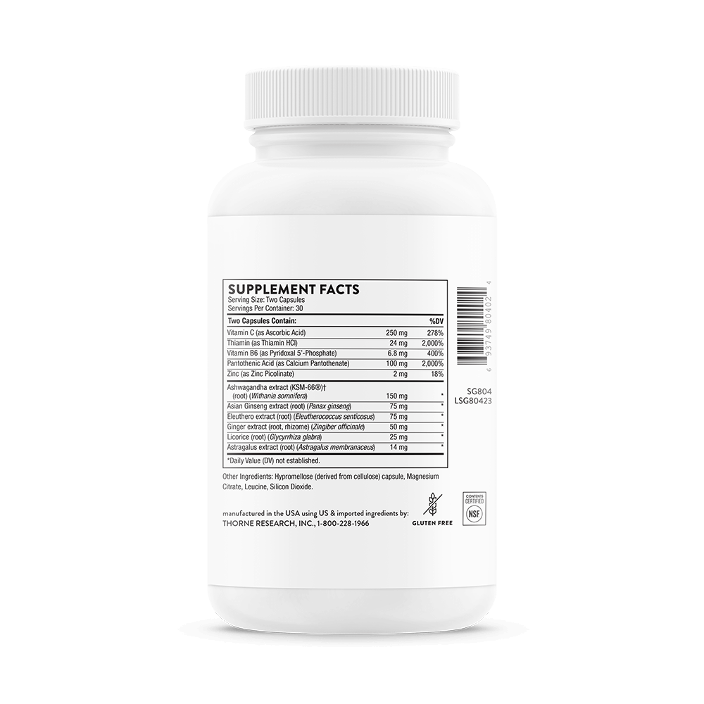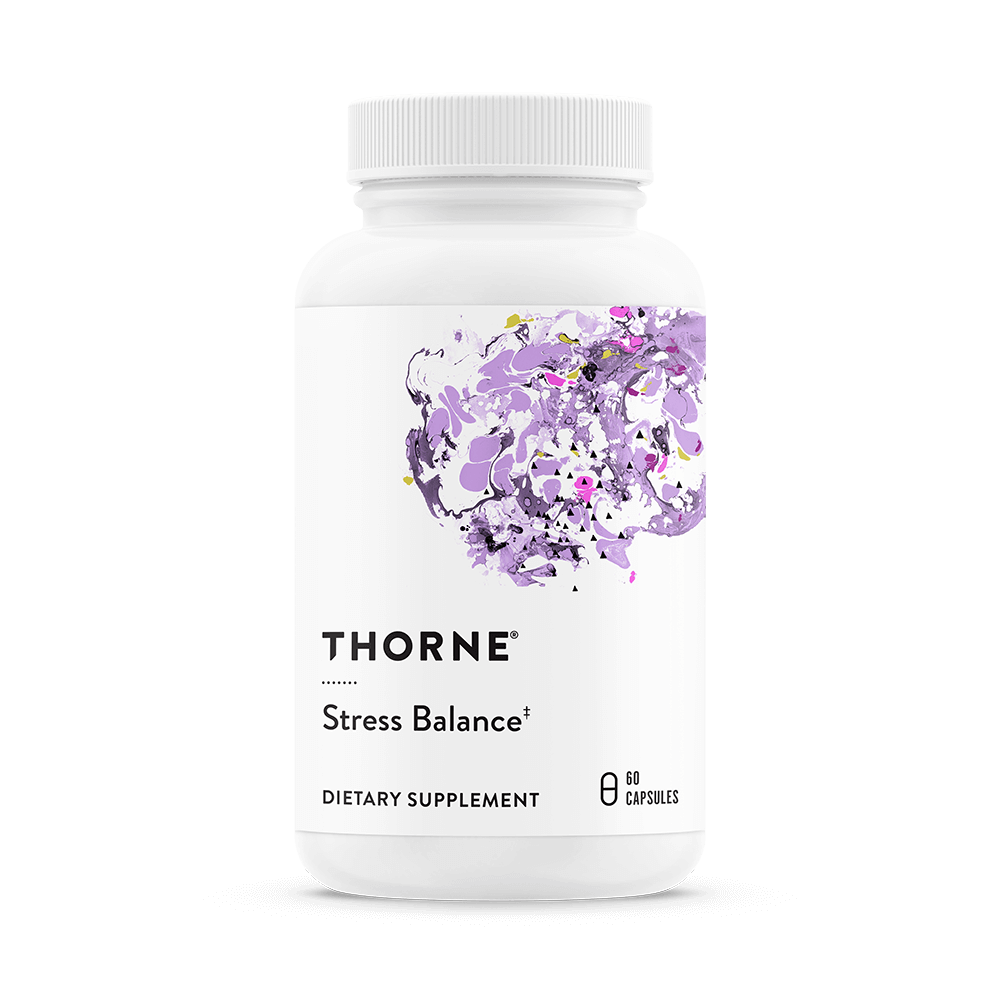 The constant low-level daily stress most of us experience can overstimulate and overtax the adrenal glands, thus adversely affecting our immune, cardiovascular, neurological, and endocrine systems. Thorne’s Stress Balance helps to modulate the effects of a modern lifestyle.* Its unique combination of key adaptogen botanicals, B vitamins, vitamin C, and zinc helps the adrenal glands optimize their response to stress.*