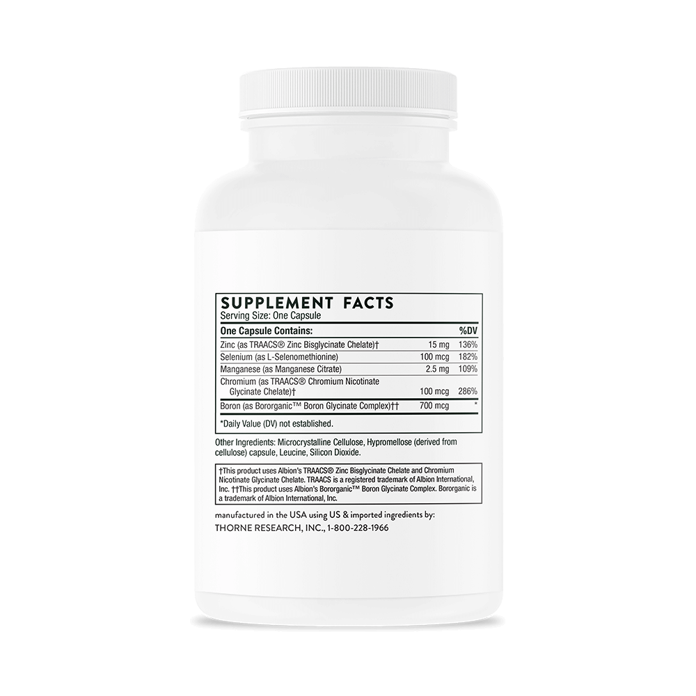 Research on trace minerals has conclusively demonstrated their importance to human health.* Trace minerals are cofactors for most of the body's enzymatic reactions, as well as being essential for proper hormone and neurotransmitter function.* Many of the trace minerals can be obtained from the diet by eating fruits and vegetables; however, mineral depletion of the soil has rendered much of today's produce deficient in these essential nutrients. A deficiency of one or more of the trace minerals can adversely impact cardiovascular health, bone health, fertility, cognitive function, and immune function.* Even a mild deficiency of a trace mineral can result in less than optimal growth and development.* Trace Minerals is a comprehensive trace mineral formulation of well-absorbed forms for superb absorption.*