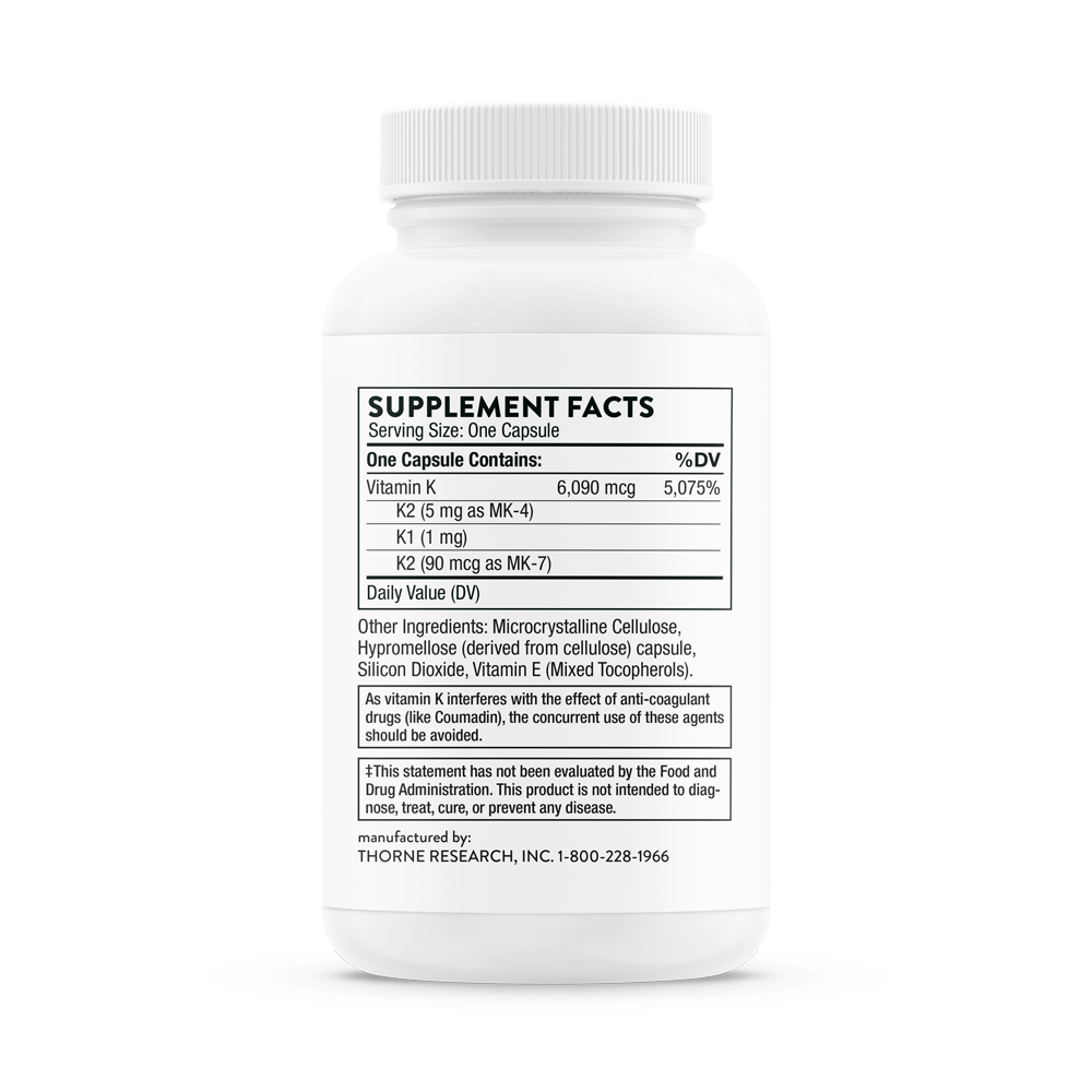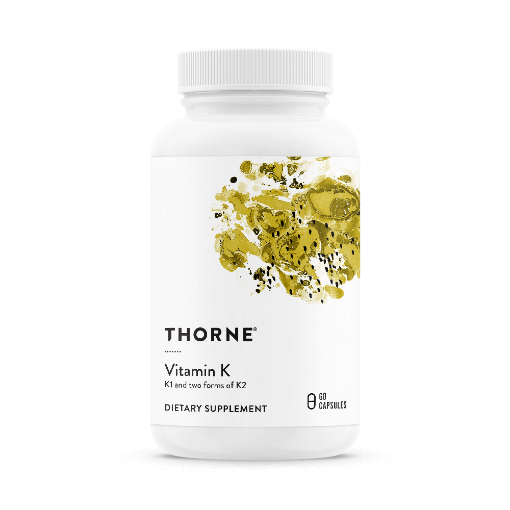 Vitamin K supports the healthy ability of the blood to clot, promotes healthy arteries, and supports healthy bone density. However, there are three types of vitamin K, and each one is responsible for different benefits. Thorne’s Vitamin K is a complete formula that includes vitamin K1 and two forms of vitamin K2.